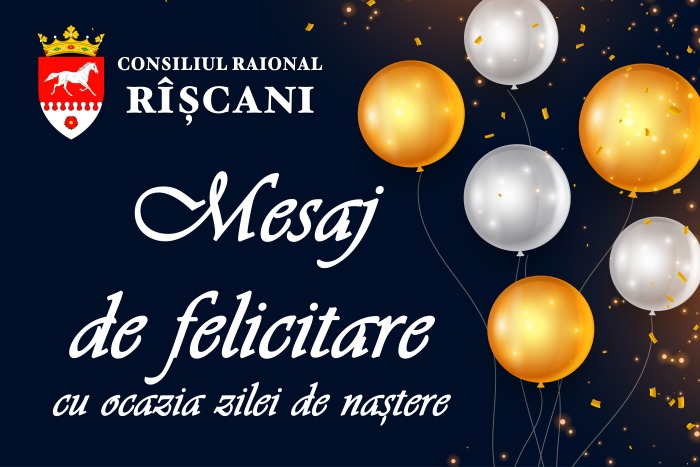 Cu ocazia zilei de naștere, Consiliul Raional Rîșcani și Președintele raionului, dl Vladimir Mizdrenco, Vă adresează cele mai sincere urări de sănătate, prosperitate și realizări frumoase.